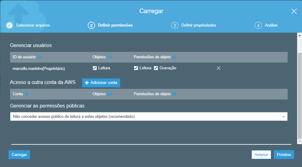 O próximo passo consiste em definir opções de leitura e escrita do objeto. Deixe as opções marcadas conforme a Figura 6 e clique em próximo.